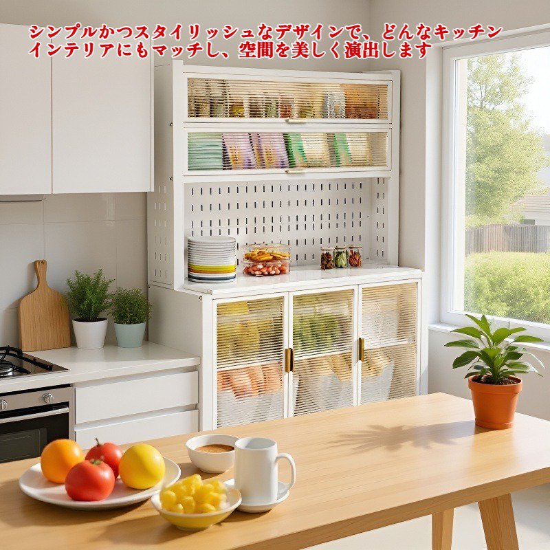 ● 大容量収納スペースで、キッチンの小物や調味料、食器類をすっきり整理でき、使い勝手が抜群です。